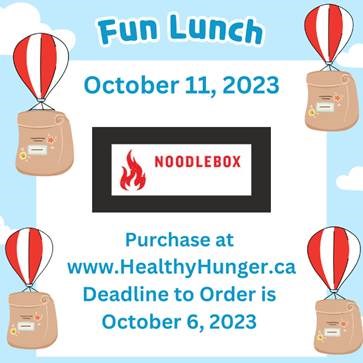We’re not noodling around with this next FHSS fun lunch on October 11, 2023. To participate in this optional fundraiser, place your order by October 6 at www.HealthyHunger.ca